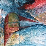Schilderij ,in grijs-en roodtinten ,met zilver,op doek