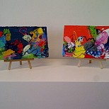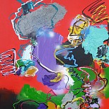 Acryl / mixed op linnen - abstract expressief werk - inclusief baklijst - kleurrijk