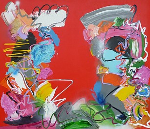 Een globale impressie van het schilderij "I was made for Loving you" 140x120cm.