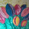 Een globale impressie van het schilderij "Abstracte tulpen" 50x50cm.