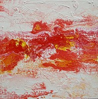 Acrylschilderij in vermillioen, geel en wit.