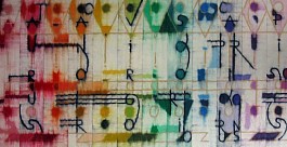 Een globale impressie van het schilderij "Veelklank" 121x70cm.