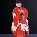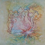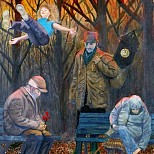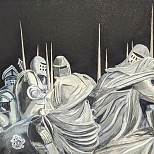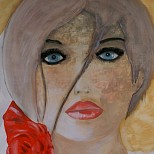 Een globale impressie van het schilderij "Vrouw en de dood in een spiegel" 50x60cm.