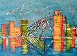 Skyline Rotterdam geschilderd op een abstracte wijze.