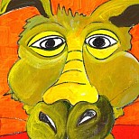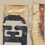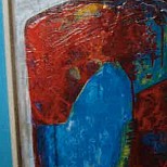 Een globale impressie van het schilderij "Untitled abstract - groen met blauw" 40x40cm.