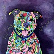 Hector de pitbull geschilderd met vrolijke acryl kleuren