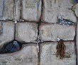 Het tweede schilderij van de serie KLAAGMUUR is de samenvatting van de beide andere en is gemaakt naar aanleiding van psalm 122:6: bidt voor de vrede van Jeruzalem. De gebedsbriefjes en de duif, symbool van de vrede, komen bij elkaar. Met elkaar kunnen ze een drieluik vormen. Lees ook het gedicht, dat hierover gemaakt werd op mijn website