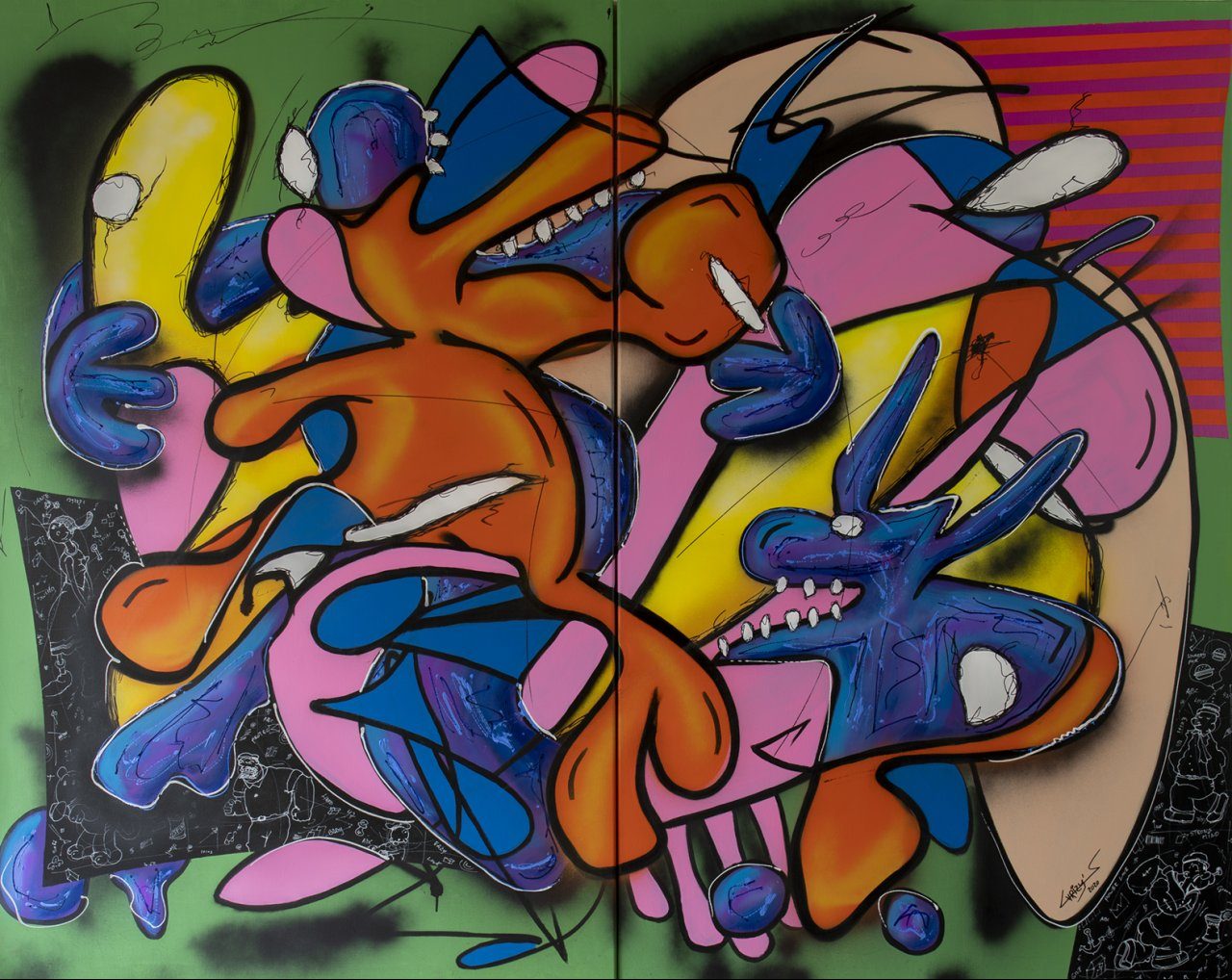 The painting is about a funny story. A person wants to give everything to his love. Takes everything out, but puts too much effort. What he or she has to bring is only love.