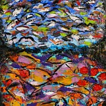Een globale impressie van het schilderij "Nachtvlucht" 70x50cm.