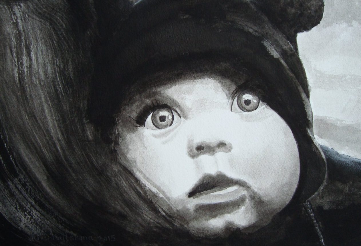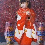 Een globale impressie van het schilderij "Baby op schouder" 30x21cm.
