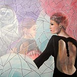 Vrouw en de dood in een spiegel