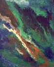 Een warm,abstract schilderij,die mijn groene wereld benaderd.