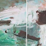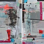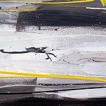 Dit schilderij heeft een strakke vlakverdeling. Er is gebruik gemaakt van horizontale en verticale lijnen, er zijn vierkanten en rechthoeken. Ook is en een bloem, bloemen motief zichtbaar. Het verhaal achter dit schilderij is dat het linker en rechter deel het zwart/wit denken verbeeld en het midden, daar waar juist alles gebeurd en het spannend wordt, daar moet je zijn, ook wel het grijze gebied genoemd. ook al is het hier alles behalve grijs.
