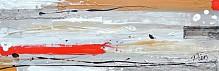 Een langwerpig schilderij in de kleuren rood, bruin/beige, grijstinten, wit en donker bruin. Het is horizontaal gericht. Het verbeeld twee mensen die een andere kant op gaan, separate  ways. Dit kan je relatie gericht zien, maar ook op andere vlakken. Het is een dik 3D doek.