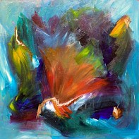 Een globale impressie van het schilderij "Bad hair day" 90x90cm.