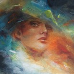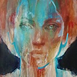 Groot schilderij gemaakt met acrylverf op doek. Het is abstractie gecombineerd met het vrouwelijk portret in kleur. Het is mysterieus en romantisch en heeft een gelaagdheid.