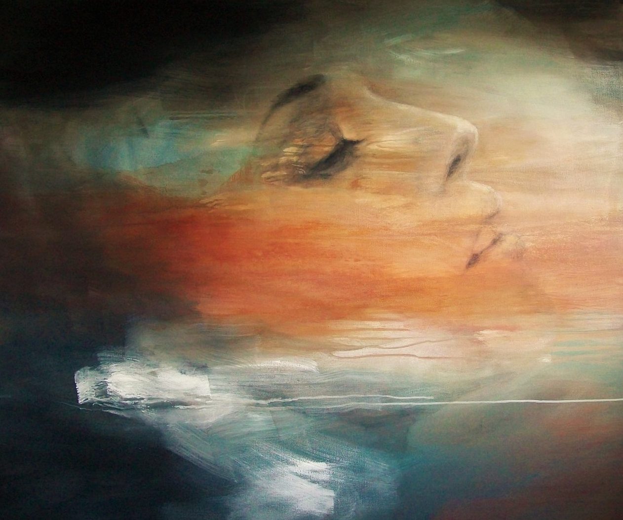 Groot schilderij gemaakt met acrylverf op doek. Het heeft een frame dat niet kan kromtrekken. Het bestaat uit abstractie gecombineerd met het vrouwelijk gelaat. Het is mysterieus en dromerig vol nostalgie.
