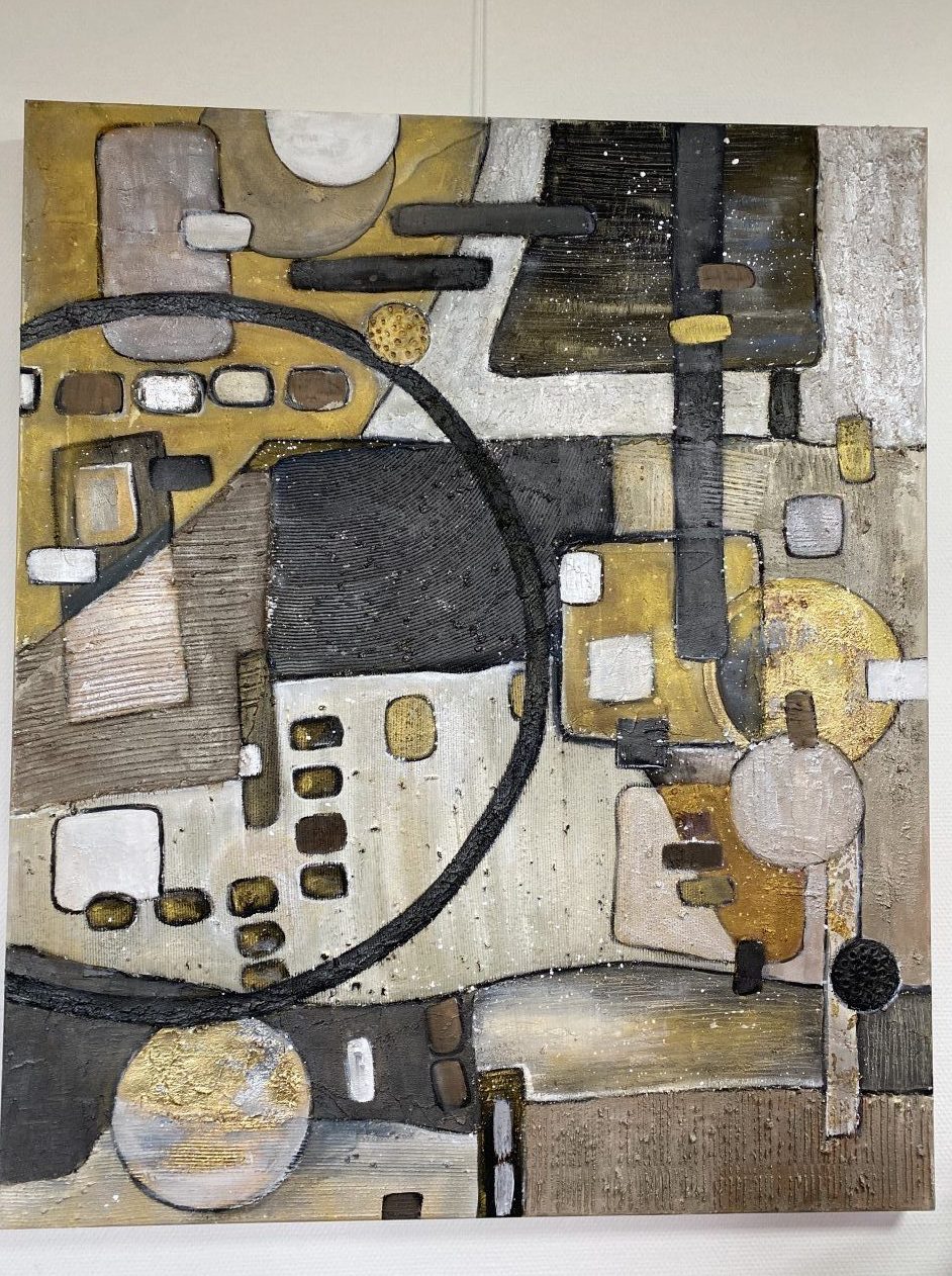 Mixed media, schilderij op canvas3 D Doek. Structuur, acryl ,gold leaf.