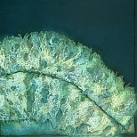 Materie schilderij/ mixed media/ rond mdf paneel in houten omlijsting/ acryl en ecoline/ 2zijdig bewerkt( geschikt voor roomdivider of vensterbank) andere zijde stenen in zand