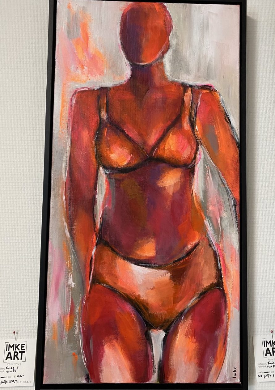 Schilderij Twice 1 .acryl verf op canvas linnen doek. Afgewerkt met mat vernis en mooie baklijst. Dit schilderij is te bekijken/ te koop in de showroom van Totalhome in Lelystad. Als setprijs met Twice 2 kost het 2 luik. 350,00