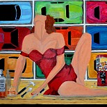 Een globale impressie van het schilderij "Me and My shadow" 85x85cm.