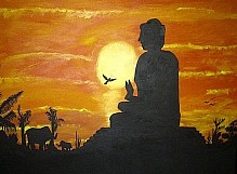 Een globale impressie van het schilderij "Boeddha" 100x80cm.
