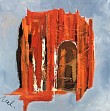 Acryl op doek,met materialen er aan toegevoegd,in oranje